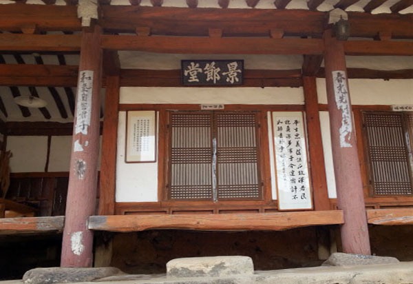 ![]() 경절당(景節堂) 경절당은 대율리 대종가 종택내에 위치하고 있다. 고색창연한 돌담 울타리가 인상적인 종택에 들어서면 먼저 경절당 재실과 당호가 보인다. 이재실은 경재선생의 충절을 景仰하고 빛내기 위하여 후손들.. |
